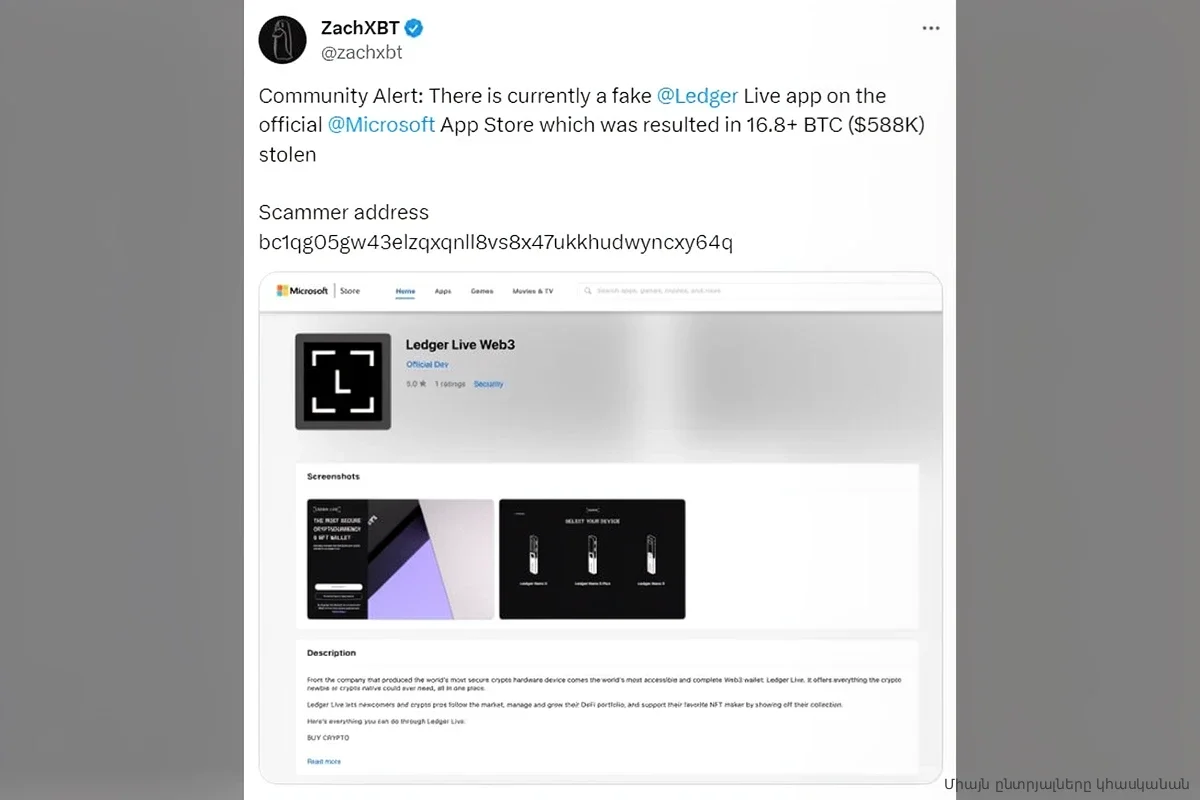 Мошенники заработали 9,5 млн долларов на невнимательности владельцев криптовалют, разместив в App Store поддельную копию кошелька Ledger Live. Жертвами фишинговой атаки, которая длилась всего неделю — с 7 по 13 апреля, — стали более 50 инвесторов.